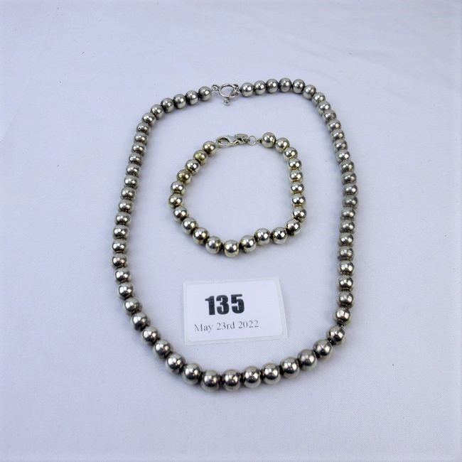 Current Bid: $53.00 [Refresh Price]YOU WILL NEED TO REFRESH THIS PAGE TO SEE UPDATED BID (Log in and this will update automatically) You must LOG IN or REGISTER to see this full page auction listing and bid. Auction is Over Winning Bid Amount: $53.00 **Lot Details: (135h) - Beautiful two-piece sterling silver jewelry set including necklace and bracelet with ball design; necklace is 18 ½” and approx.. 55 grams. Log in to add this lot to your watch list or place a bid |
