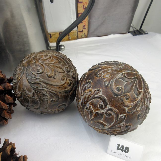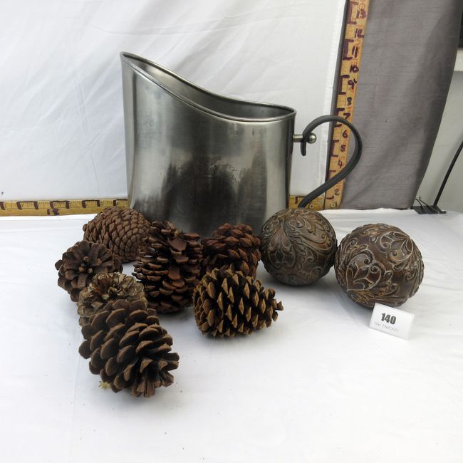 Current Bid: $5.00 [Refresh Price]YOU WILL NEED TO REFRESH THIS PAGE TO SEE UPDATED BID (Log in and this will update automatically) You must LOG IN or REGISTER to see this full page auction listing and bid. Auction is Over Winning Bid Amount: $5.00 **Lot Details: (140h) - Decorative Metal Pitcher with southern pine cones and two decorative balls. Log in to add this lot to your watch list or place a bid |