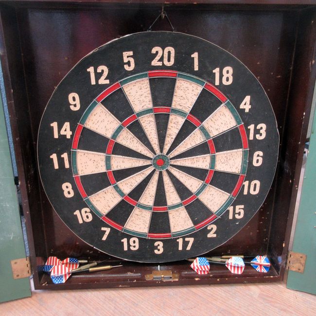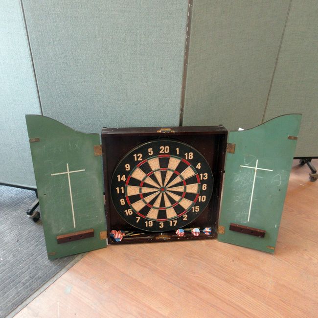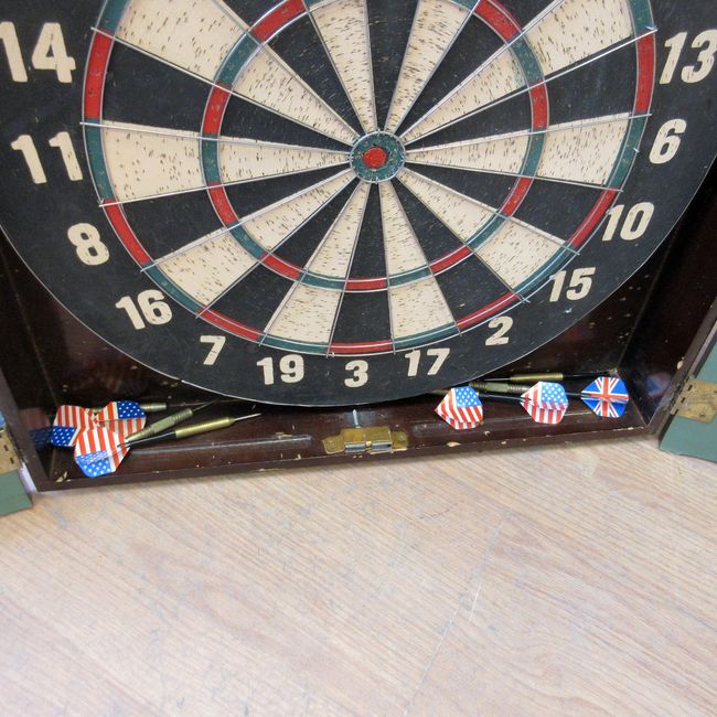 Current Bid: $22.00 [Refresh Price]YOU WILL NEED TO REFRESH THIS PAGE TO SEE UPDATED BID (Log in and this will update automatically) You must LOG IN or REGISTER to see this full page auction listing and bid. Auction is Over Winning Bid Amount: $22.00 **Lot Details: (157h) - Dartboard in wooden cabinet with darts Log in to add this lot to your watch list or place a bid |