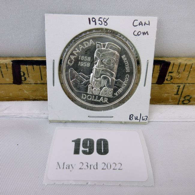 Current Bid: $35.01 [Refresh Price]YOU WILL NEED TO REFRESH THIS PAGE TO SEE UPDATED BID (Log in and this will update automatically) You must LOG IN or REGISTER to see this full page auction listing and bid. Auction is Over Winning Bid Amount: $35.01 **Lot Details: (190h) - Canadian 1958 Totem Pole BC commemorative Silver Dollar graded as BU/63 by the local coin shop Log in to add this lot to your watch list or place a bid |