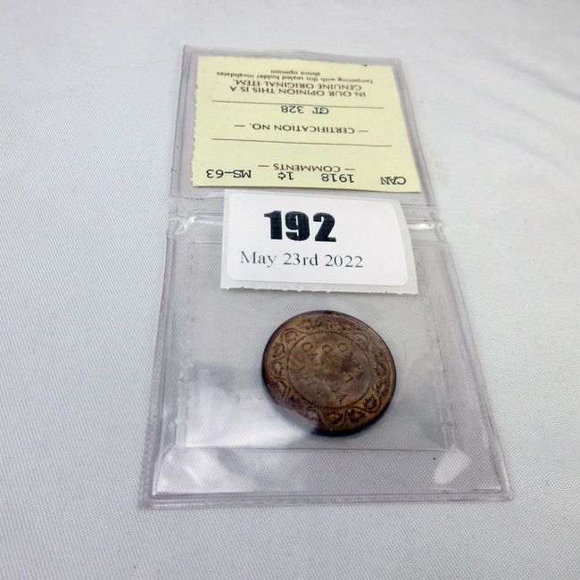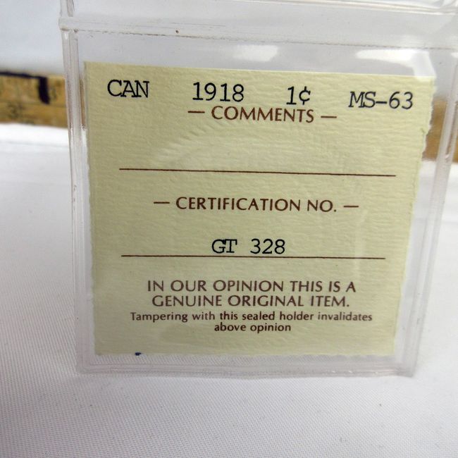 Current Bid: $71.01 [Refresh Price]YOU WILL NEED TO REFRESH THIS PAGE TO SEE UPDATED BID (Log in and this will update automatically) You must LOG IN or REGISTER to see this full page auction listing and bid. Auction is Over Winning Bid Amount: $71.01 **Lot Details: (192h) - Canadian Red Large Cent has been strictly graded by ICCS as MS/63. Very sharp strike Log in to add this lot to your watch list or place a bid |