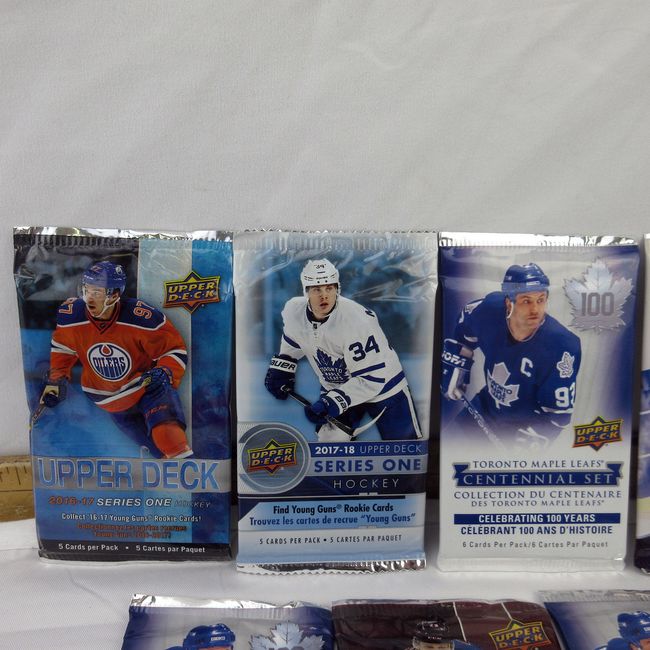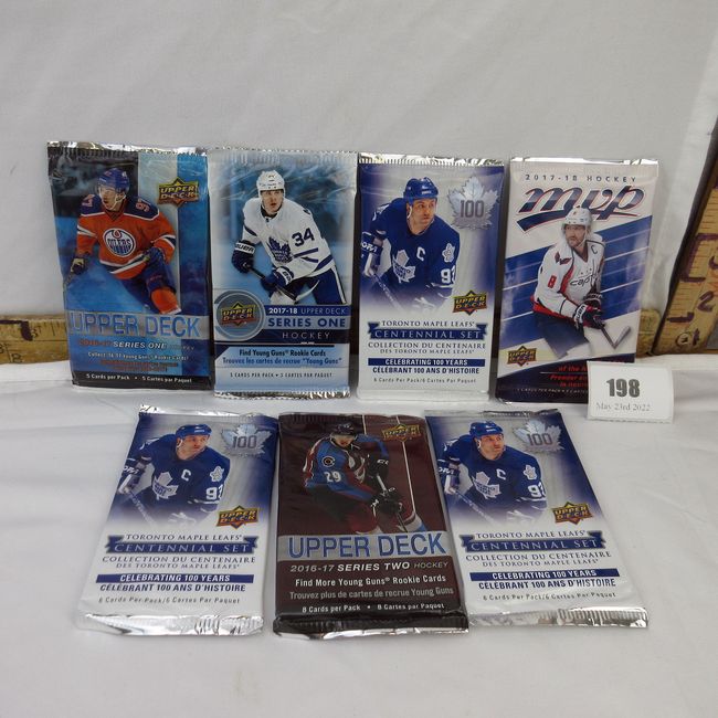 Current Bid: $30.00 [Refresh Price]YOU WILL NEED TO REFRESH THIS PAGE TO SEE UPDATED BID (Log in and this will update automatically) You must LOG IN or REGISTER to see this full page auction listing and bid. Auction is Over Winning Bid Amount: $30.00 **Lot Details: (198h) - 7 Upperdeck factory sealed hockey wax packs. Includes both 2016-17 series that may contain an Austin Matthews rookie and a Mitch Marner rookie. Will you be lucky! Log in to add this lot to your watch list or place a bid |