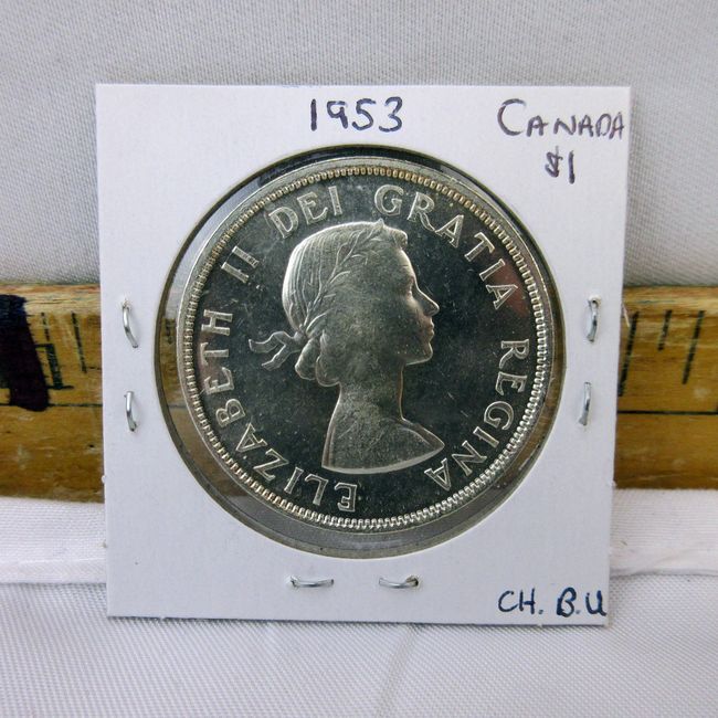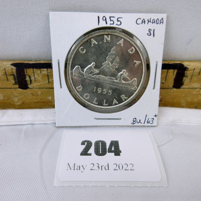 Current Bid: $42.00 [Refresh Price]YOU WILL NEED TO REFRESH THIS PAGE TO SEE UPDATED BID (Log in and this will update automatically) You must LOG IN or REGISTER to see this full page auction listing and bid. Auction is Over Winning Bid Amount: $42.00 **Lot Details: (204h) - Canadian 1955 Silver Dollar. Wonderful condition, graded MS/63 by local coin dealer Log in to add this lot to your watch list or place a bid |