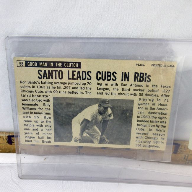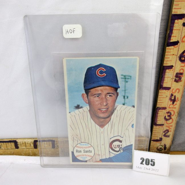Current Bid: $9.00 [Refresh Price]YOU WILL NEED TO REFRESH THIS PAGE TO SEE UPDATED BID (Log in and this will update automatically) You must LOG IN or REGISTER to see this full page auction listing and bid. Auction is Over Winning Bid Amount: $9.00 **Lot Details: (205h) - A rare 1964 Baseball card find. This was a Topps large size Baseball set. This is HOF Ron Santo in excellent condition Log in to add this lot to your watch list or place a bid |