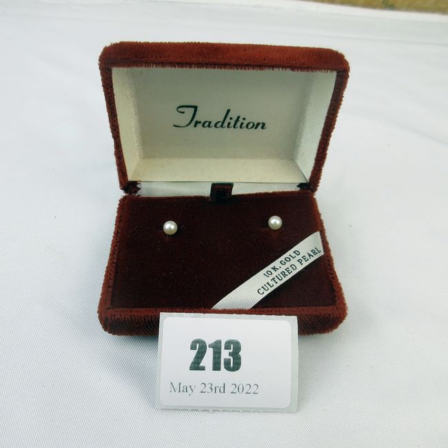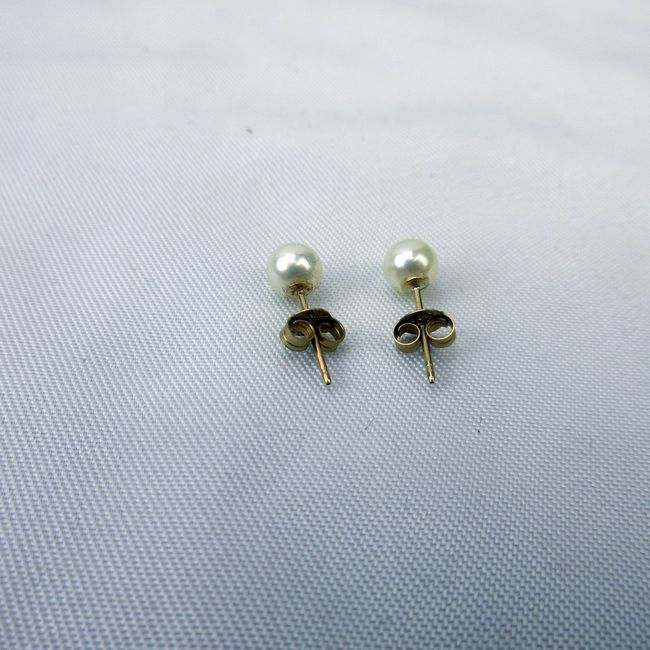 Current Bid: $14.00 [Refresh Price]YOU WILL NEED TO REFRESH THIS PAGE TO SEE UPDATED BID (Log in and this will update automatically) You must LOG IN or REGISTER to see this full page auction listing and bid. Auction is Over Winning Bid Amount: $14.00 **Lot Details: (213h) - Pearl earrings set in 10K Gold. Gold backs Log in to add this lot to your watch list or place a bid |