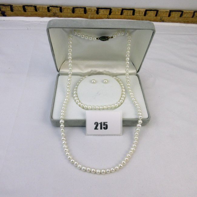 Current Bid: $75.75 [Refresh Price]YOU WILL NEED TO REFRESH THIS PAGE TO SEE UPDATED BID (Log in and this will update automatically) You must LOG IN or REGISTER to see this full page auction listing and bid. Auction is Over Winning Bid Amount: $75.75 **Lot Details: (215h) - Pearl set (earrings, bracelet, necklace). Cultured Pearls, necklace and bracelet 10K gold clasps, back of earrings 10K Log in to add this lot to your watch list or place a bid |