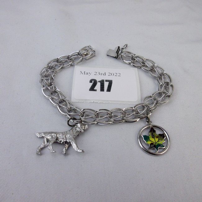 Current Bid: $14.00 [Refresh Price]YOU WILL NEED TO REFRESH THIS PAGE TO SEE UPDATED BID (Log in and this will update automatically) You must LOG IN or REGISTER to see this full page auction listing and bid. Auction is Over Winning Bid Amount: $14.00 **Lot Details: (217h) - Sterling bracelet with charms Log in to add this lot to your watch list or place a bid |