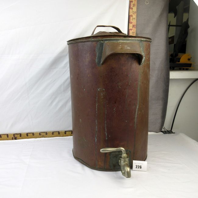 Current Bid: $19.00 [Refresh Price]YOU WILL NEED TO REFRESH THIS PAGE TO SEE UPDATED BID (Log in and this will update automatically) You must LOG IN or REGISTER to see this full page auction listing and bid. Auction is Over Winning Bid Amount: $19.00 **Lot Details: (226h) - Vintage antique copper canister with nice spigot tap. Not sure what it was originally used for but probably some sort of drink that makes you wobbly. Just guessing. It could use a polish to shine bright if desired. 16" x 10.5" Log in to add this lot to your watch list or place a bid |