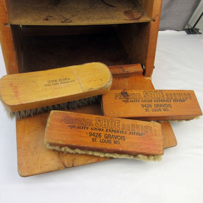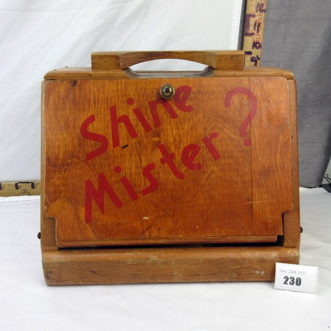 Current Bid: $12.00 [Refresh Price]YOU WILL NEED TO REFRESH THIS PAGE TO SEE UPDATED BID (Log in and this will update automatically) You must LOG IN or REGISTER to see this full page auction listing and bid. Auction is Over Winning Bid Amount: $12.00 **Lot Details: (230h) - Old St Louis shoeshine box. Hinged front box door with shine tools included. The tools are branded and one is made with 100% horse hair. Great display, quality and size. 11" x 9" Log in to add this lot to your watch list or place a bid |