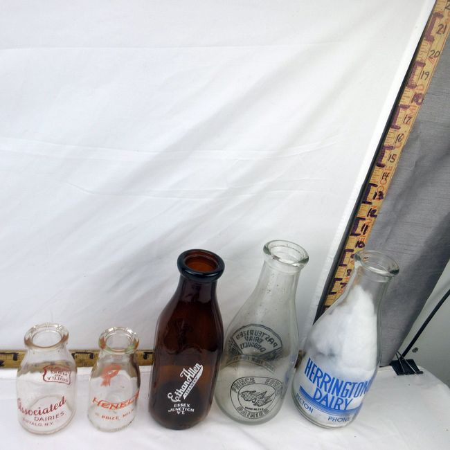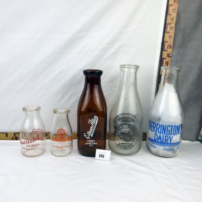 Current Bid: $19.00 [Refresh Price]YOU WILL NEED TO REFRESH THIS PAGE TO SEE UPDATED BID (Log in and this will update automatically) You must LOG IN or REGISTER to see this full page auction listing and bid. Auction is Over Winning Bid Amount: $19.00 **Lot Details: (241h) - Awesome 5 vintage milk botte group. Different brands and sizes. The milk delivery man being the epic one. You couldn't find a better time period graphic. Very cool. Nice bunch Log in to add this lot to your watch list or place a bid |