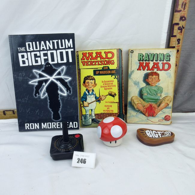 Current Bid: $13.35 [Refresh Price]YOU WILL NEED TO REFRESH THIS PAGE TO SEE UPDATED BID (Log in and this will update automatically) You must LOG IN or REGISTER to see this full page auction listing and bid. Auction is Over Winning Bid Amount: $13.35 **Lot Details: (246h) - Just a fun lot. Candy tins, still hold candy but I don't suggest eating at all. A couple cool cover Mad Magazine books and my favourite The Quantum Bigfoot by Ron Moorehead. If unaware, look into it, very interesting read indeed. Enjoy Log in to add this lot to your watch list or place a bid |
