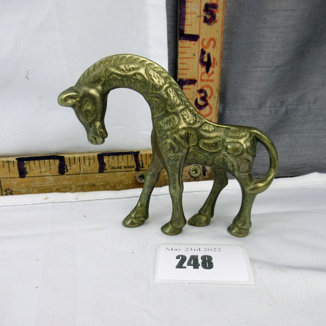 Current Bid: $9.00 [Refresh Price]YOU WILL NEED TO REFRESH THIS PAGE TO SEE UPDATED BID (Log in and this will update automatically) You must LOG IN or REGISTER to see this full page auction listing and bid. Auction is Over Winning Bid Amount: $9.00 **Lot Details: (248h) - Vintage antique heavy brass Giraffe figure. Nice looking little collectible. Approx 4"H Log in to add this lot to your watch list or place a bid |