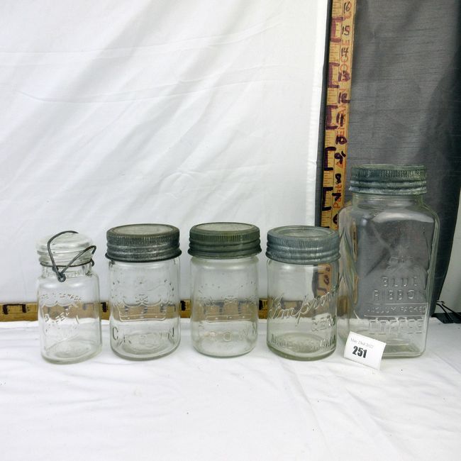 Current Bid: $9.00 [Refresh Price]YOU WILL NEED TO REFRESH THIS PAGE TO SEE UPDATED BID (Log in and this will update automatically) You must LOG IN or REGISTER to see this full page auction listing and bid. Auction is Over Winning Bid Amount: $9.00 **Lot Details: (251h) - 1930's-50's embossed preserve jars, good group of them. Blue Ribbon Coffee 1933, Crown 1945, Crown 1959. Perfect Seal with hinge top. Improved 1943. Ready to put stuff in them and display. 5 in total Log in to add this lot to your watch list or place a bid |
