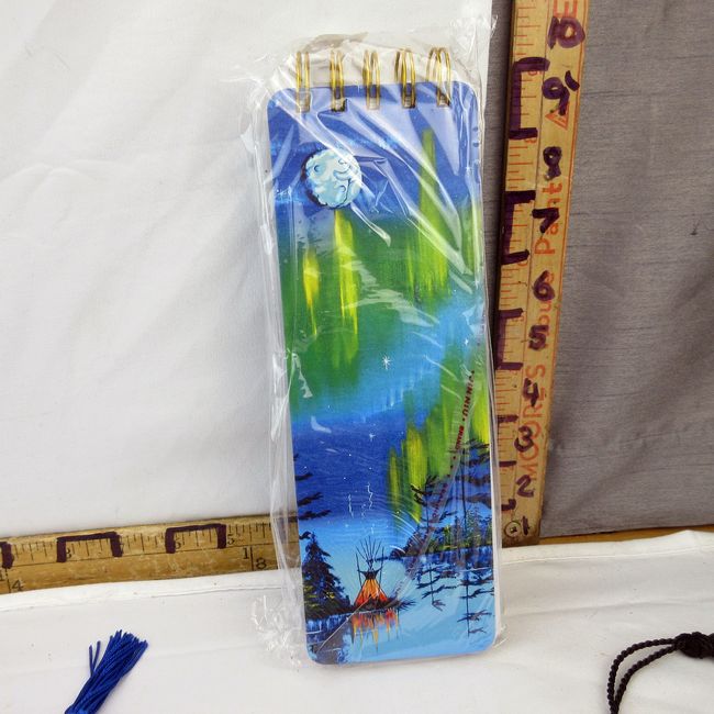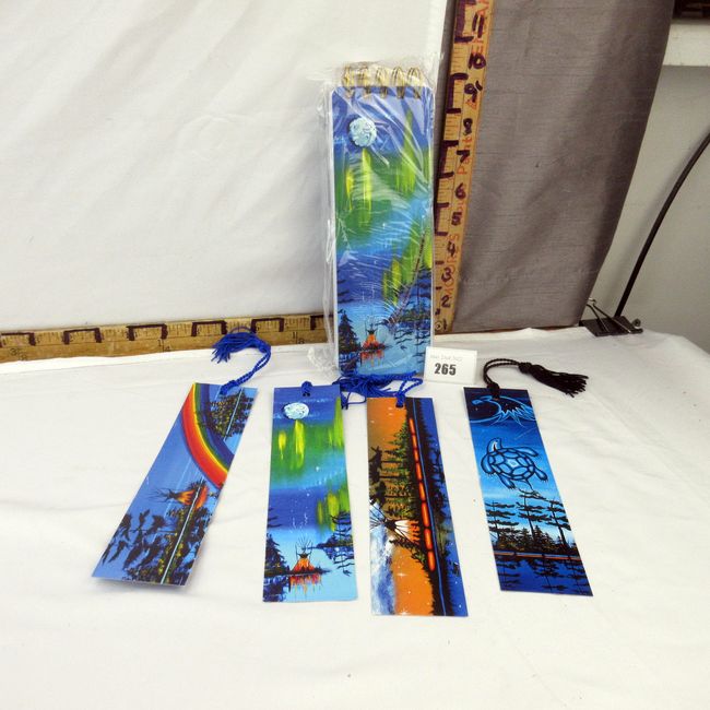 Current Bid: $7.00 [Refresh Price]YOU WILL NEED TO REFRESH THIS PAGE TO SEE UPDATED BID (Log in and this will update automatically) You must LOG IN or REGISTER to see this full page auction listing and bid. Auction is Over Winning Bid Amount: $7.00 **Lot Details: (265h) - A NORTHERN LIGHTS BRASS RINGED HARD COVER NOTE PAD & 5 TASSELED BOOKMARKS. New, excellent quality. Artwork by Ojibwe Artist William Monague. Log in to add this lot to your watch list or place a bid |