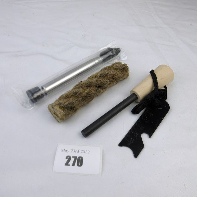 Current Bid: $17.00 [Refresh Price]YOU WILL NEED TO REFRESH THIS PAGE TO SEE UPDATED BID (Log in and this will update automatically) You must LOG IN or REGISTER to see this full page auction listing and bid. Auction is Over Winning Bid Amount: $17.00 **Lot Details: (270h) - SURVIVAL KIT, NEW. Multi Tool Set, FireBellow & Waterproof Survival Fire Starter, excellent quality. Log in to add this lot to your watch list or place a bid |