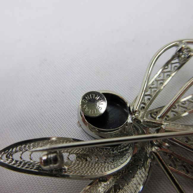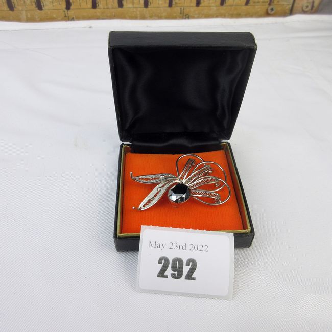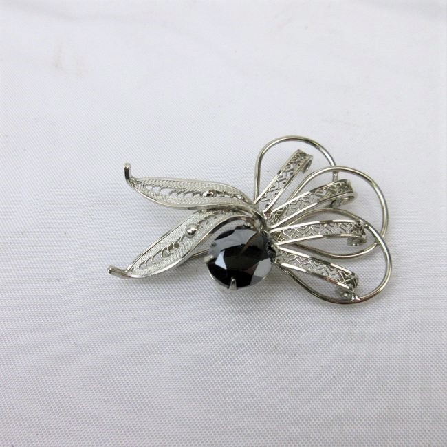 Current Bid: $17.00 [Refresh Price]YOU WILL NEED TO REFRESH THIS PAGE TO SEE UPDATED BID (Log in and this will update automatically) You must LOG IN or REGISTER to see this full page auction listing and bid. Auction is Over Winning Bid Amount: $17.00 **Lot Details: (292h) - 1950/60s signed TITAN sterling silver brooch with faceted black Hematite aka black Alaskan diamond stone. Beautiful filigree work. In excellent condition. Log in to add this lot to your watch list or place a bid |