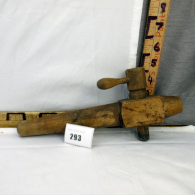 Current Bid: $5.00 [Refresh Price]YOU WILL NEED TO REFRESH THIS PAGE TO SEE UPDATED BID (Log in and this will update automatically) You must LOG IN or REGISTER to see this full page auction listing and bid. Auction is Over Winning Bid Amount: $5.00 **Lot Details: (293h) - Antique keg tap. Made of all wood parts, great piece for the barware collection. There is faint embossed lettering on one side and fragments of possibly the original label on the other. Working condition. Log in to add this lot to your watch list or place a bid |