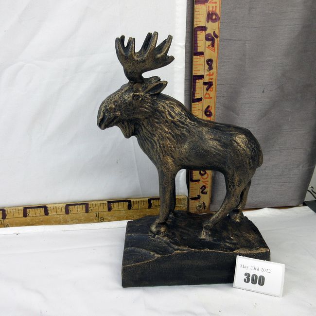 Current Bid: $8.22 [Refresh Price]YOU WILL NEED TO REFRESH THIS PAGE TO SEE UPDATED BID (Log in and this will update automatically) You must LOG IN or REGISTER to see this full page auction listing and bid. Auction is Over Winning Bid Amount: $8.22 **Lot Details: (300h) - Majestic 8.75" tall moose sculpture. Made of metal. Log in to add this lot to your watch list or place a bid |
