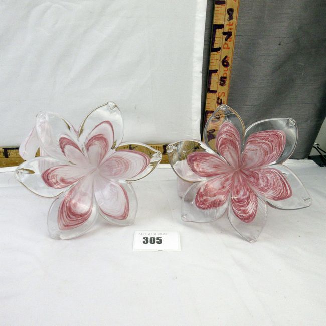 Current Bid: $35.22 [Refresh Price]YOU WILL NEED TO REFRESH THIS PAGE TO SEE UPDATED BID (Log in and this will update automatically) You must LOG IN or REGISTER to see this full page auction listing and bid. Auction is Over Winning Bid Amount: $35.22 **Lot Details: (305h) - A pair of pretty pink Murano glass flowers. Both in excellent condition. Log in to add this lot to your watch list or place a bid |