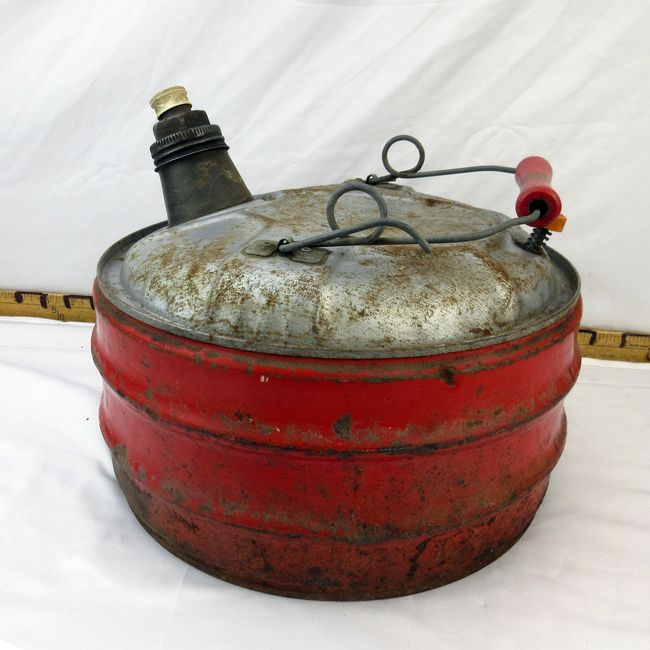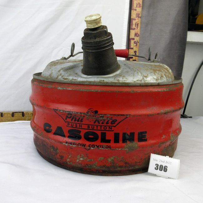 Current Bid: $25.00 [Refresh Price]YOU WILL NEED TO REFRESH THIS PAGE TO SEE UPDATED BID (Log in and this will update automatically) You must LOG IN or REGISTER to see this full page auction listing and bid. Auction is Over Winning Bid Amount: $25.00 **Lot Details: (306h) - Vintage 2-gallon Phil Rite metal gas can with original caps and filter intact. Great graphics still visible on front and back. Looks solid, no holes. Sorry, it's empty. Log in to add this lot to your watch list or place a bid |
