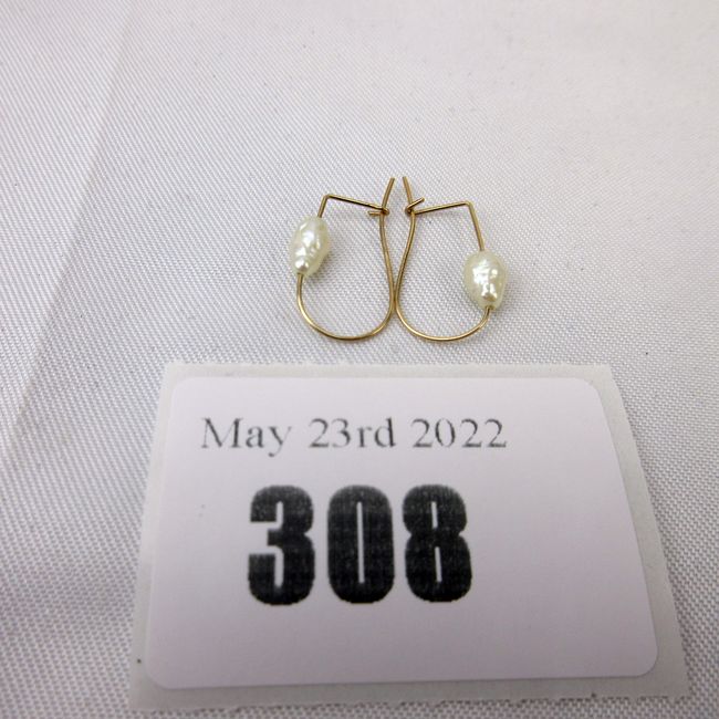 Current Bid: $17.00 [Refresh Price]YOU WILL NEED TO REFRESH THIS PAGE TO SEE UPDATED BID (Log in and this will update automatically) You must LOG IN or REGISTER to see this full page auction listing and bid. Auction is Over Winning Bid Amount: $17.00 **Lot Details: (308h) - . A very nice pair of vintage 10 karat gold and pearl earrings. Hallmarked with makers mark and 10k. Log in to add this lot to your watch list or place a bid |