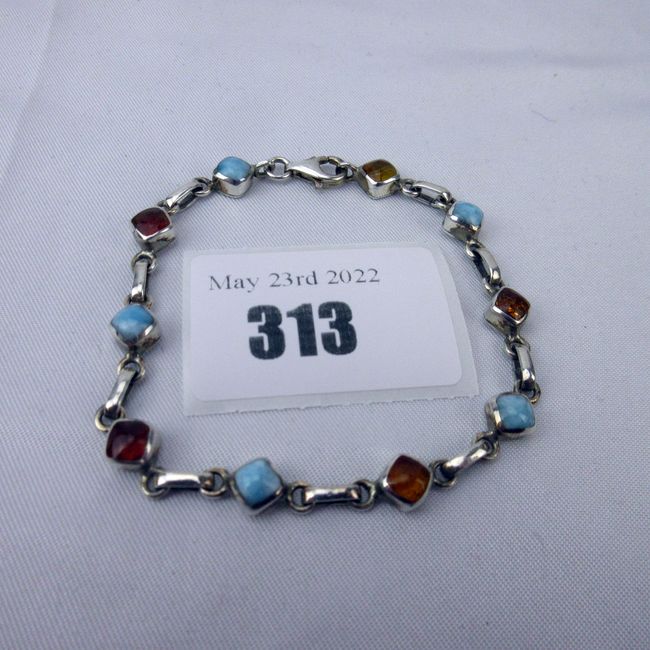Current Bid: $22.00 [Refresh Price]YOU WILL NEED TO REFRESH THIS PAGE TO SEE UPDATED BID (Log in and this will update automatically) You must LOG IN or REGISTER to see this full page auction listing and bid. Auction is Over Winning Bid Amount: $22.00 **Lot Details: (313h) - A vintage rare blue larimar and amber bracelet set in sterling silver. Larimar is considered rare because it is only found in one place on earth and supplies are diminishing. Log in to add this lot to your watch list or place a bid |
