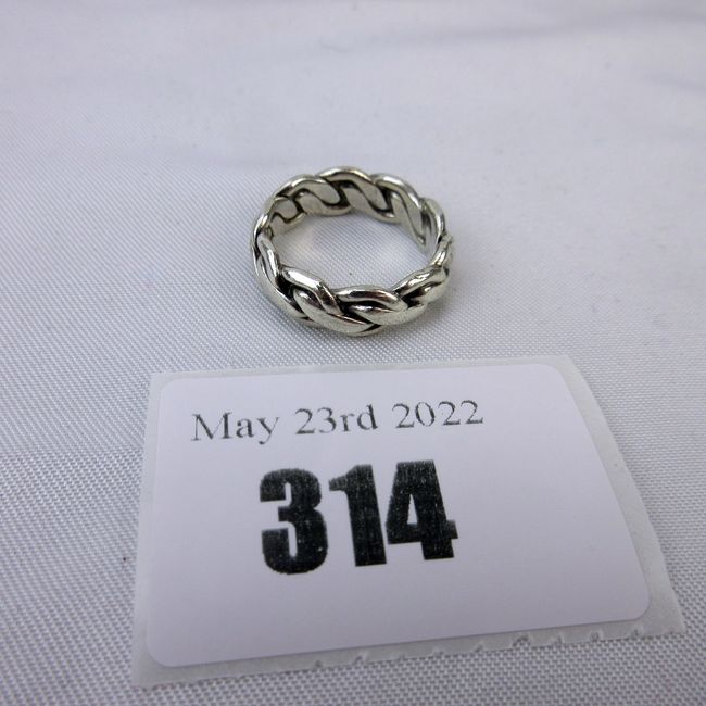 Current Bid: $14.00 [Refresh Price]YOU WILL NEED TO REFRESH THIS PAGE TO SEE UPDATED BID (Log in and this will update automatically) You must LOG IN or REGISTER to see this full page auction listing and bid. Auction is Over Winning Bid Amount: $14.00 **Lot Details: (314h) - A nice and solid vintage sterling silver twisted band ring. Stamped 925 and something else that is hard to read. Log in to add this lot to your watch list or place a bid |
