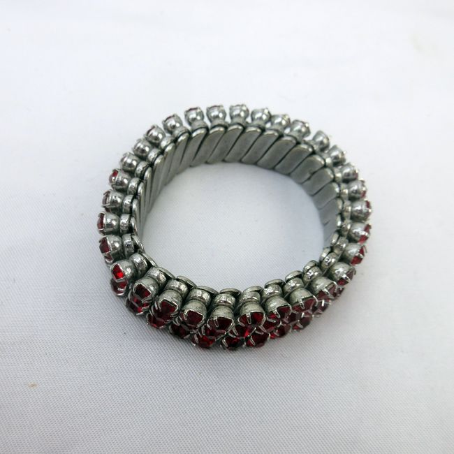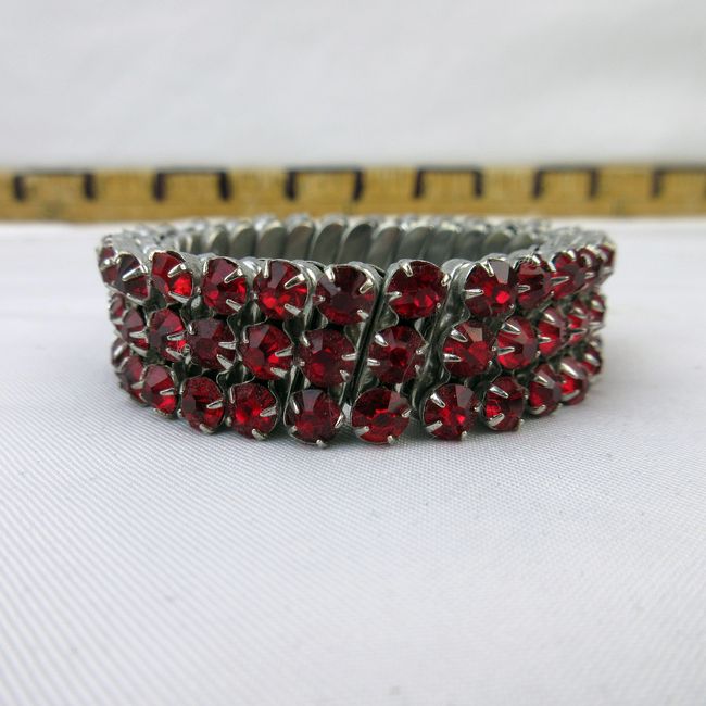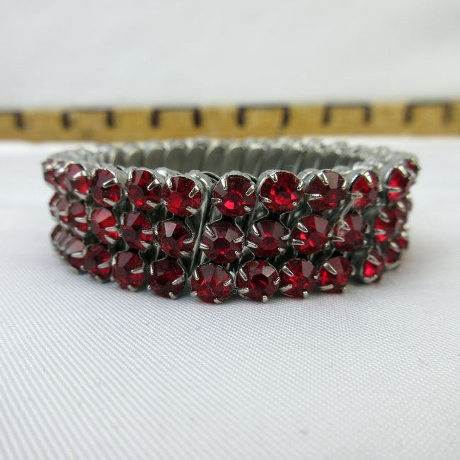 Current Bid: $12.00 [Refresh Price]YOU WILL NEED TO REFRESH THIS PAGE TO SEE UPDATED BID (Log in and this will update automatically) You must LOG IN or REGISTER to see this full page auction listing and bid. Auction is Over Winning Bid Amount: $12.00 **Lot Details: (319h) - A stunning vintage stretch bracelet with beautiful red prong set stones that appear to be Swarovski crystal quality. Very well made and nice, chunky feel when being worn. Very good condition for it’s age with no missing stones. There is a worn Log in to add this lot to your watch list or place a bid |