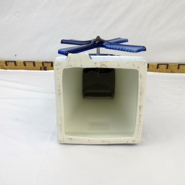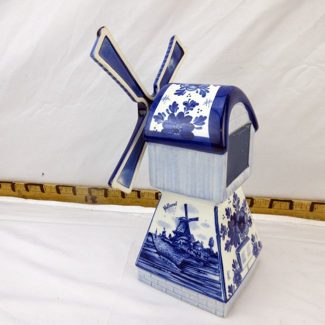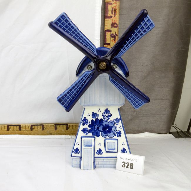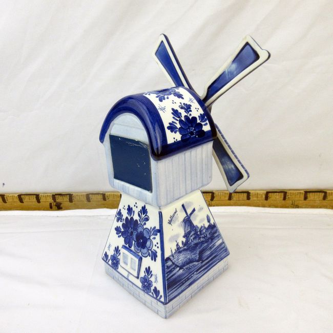 Current Bid: $26.00 [Refresh Price]YOU WILL NEED TO REFRESH THIS PAGE TO SEE UPDATED BID (Log in and this will update automatically) You must LOG IN or REGISTER to see this full page auction listing and bid. Auction is Over Winning Bid Amount: $26.00 **Lot Details: (326h) - A very nice hand painted blue delft musical windmill from Holland. When you wind up the windmill by turning the blades backwards it winds up the music box and the blades spin slowly forwards as the song plays. Approximately 9.5” tall to the to Log in to add this lot to your watch list or place a bid |