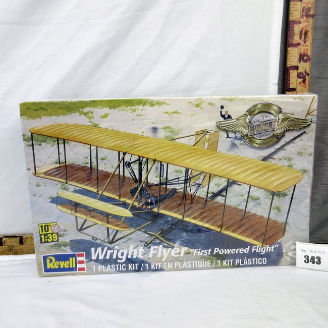 Current Bid: $17.00 [Refresh Price]YOU WILL NEED TO REFRESH THIS PAGE TO SEE UPDATED BID (Log in and this will update automatically) You must LOG IN or REGISTER to see this full page auction listing and bid. Auction is Over Winning Bid Amount: $17.00 **Lot Details: (343h) - Revell 1/39th scale Wright Flyer model kit. Factory sealed. Minor shelf wear to box Log in to add this lot to your watch list or place a bid |