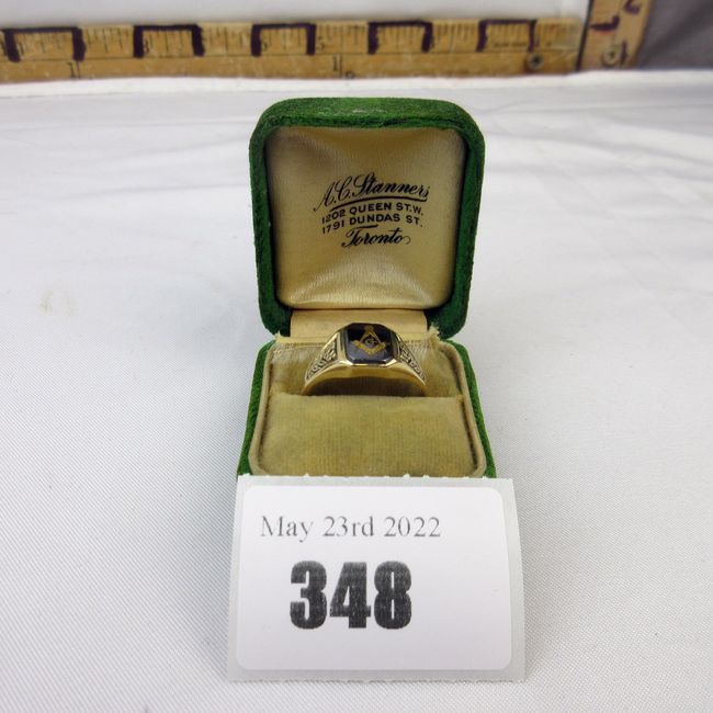 Current Bid: $74.00 [Refresh Price]YOU WILL NEED TO REFRESH THIS PAGE TO SEE UPDATED BID (Log in and this will update automatically) You must LOG IN or REGISTER to see this full page auction listing and bid. Auction is Over Winning Bid Amount: $74.00 **Lot Details: (348h) - Masonic gold ring marked 10K in ring box Log in to add this lot to your watch list or place a bid |