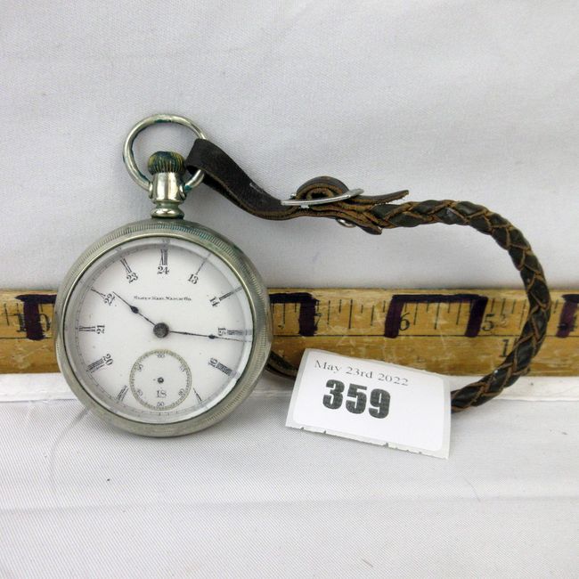 Current Bid: $5.00 [Refresh Price]YOU WILL NEED TO REFRESH THIS PAGE TO SEE UPDATED BID (Log in and this will update automatically) You must LOG IN or REGISTER to see this full page auction listing and bid. Auction is Over Winning Bid Amount: $5.00 **Lot Details: (359h) - Elgin Watch Co pocket watch, not working Log in to add this lot to your watch list or place a bid |