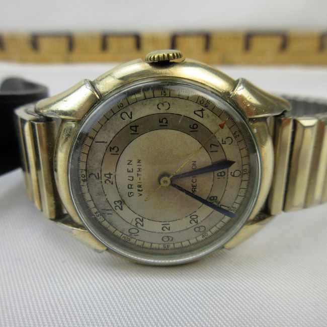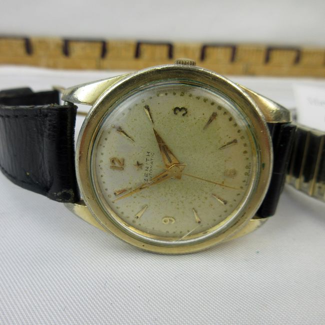 Current Bid: $63.00 [Refresh Price]YOU WILL NEED TO REFRESH THIS PAGE TO SEE UPDATED BID (Log in and this will update automatically) You must LOG IN or REGISTER to see this full page auction listing and bid. Auction is Over Winning Bid Amount: $63.00 **Lot Details: (361h) - Gruen very thin 1940's wristwatch, not working. Zeneth automatic wristwatch, as is Log in to add this lot to your watch list or place a bid |