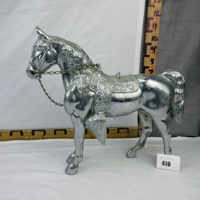 Current Bid: $17.01 [Refresh Price]YOU WILL NEED TO REFRESH THIS PAGE TO SEE UPDATED BID (Log in and this will update automatically) You must LOG IN or REGISTER to see this full page auction listing and bid. Auction is Over Winning Bid Amount: $17.01 **Lot Details: (410h) - Horse figurine, made of metal. Nice details. Log in to add this lot to your watch list or place a bid |
