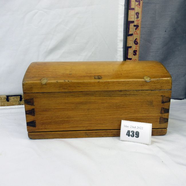 Current Bid: $12.00 [Refresh Price]YOU WILL NEED TO REFRESH THIS PAGE TO SEE UPDATED BID (Log in and this will update automatically) You must LOG IN or REGISTER to see this full page auction listing and bid. Auction is Over Winning Bid Amount: $12.00 **Lot Details: (439h) - Old handmade dovetail wooden bank. Slot for coins and moveable bottom . A treasure piece Log in to add this lot to your watch list or place a bid |