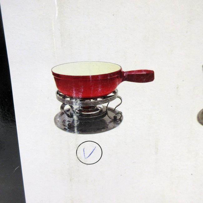 Current Bid: $7.00 [Refresh Price]YOU WILL NEED TO REFRESH THIS PAGE TO SEE UPDATED BID (Log in and this will update automatically) You must LOG IN or REGISTER to see this full page auction listing and bid. Auction is Over Winning Bid Amount: $7.00 **Lot Details: (67i) - Brand New Cast Iron SwissMar Lugano 9 pcs Cheese Fondue Set Log in to add this lot to your watch list or place a bid |