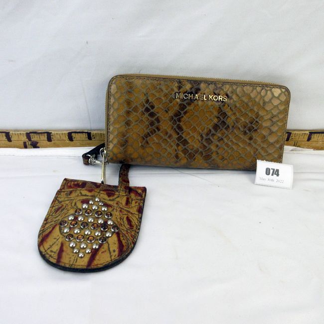 Current Bid: $27.25 [Refresh Price]YOU WILL NEED TO REFRESH THIS PAGE TO SEE UPDATED BID (Log in and this will update automatically) You must LOG IN or REGISTER to see this full page auction listing and bid. Auction is Over Winning Bid Amount: $27.25 **Lot Details: (74i) - 2 pcs, Michael Kors brown alligator look Zip Around Wallet w Key Suitcase rhinestone wrap (not MK) similar pattern always been together, both barely used Log in to add this lot to your watch list or place a bid |