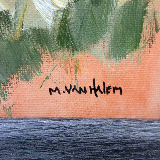 Current Bid: $38.35 [Refresh Price]YOU WILL NEED TO REFRESH THIS PAGE TO SEE UPDATED BID (Log in and this will update automatically) You must LOG IN or REGISTER to see this full page auction listing and bid. Auction is Over Winning Bid Amount: $38.35 **Lot Details: (89i) - Original oil canvas signed M Van Halem from Victoria Harbour (Murray Van Halem), painting also signed on rear canvas, Caledon Farm, 18 1/4" wide x 14 1/2" high, view his website for further info on Artist Log in to add this lot to your watch list or place a bid |