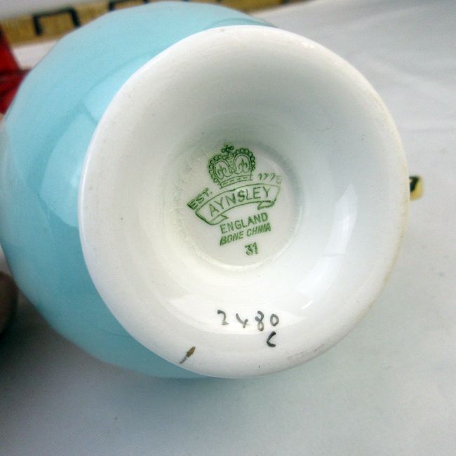 Current Bid: $39.00 [Refresh Price]YOU WILL NEED TO REFRESH THIS PAGE TO SEE UPDATED BID (Log in and this will update automatically) You must LOG IN or REGISTER to see this full page auction listing and bid. Auction is Over Winning Bid Amount: $39.00 **Lot Details: (100i) - RARE Signed D Jones "Turquoise" Aynsley England (Doris Jones) Orchard Fruit TeaCup Thumbprint Exterior and Saucer in MINT excellent condition, lots of gold gilding it's a beauty, never seen a dishwasher Log in to add this lot to your watch list or place a bid |