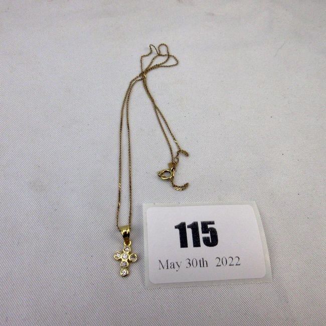Current Bid: $65.00 [Refresh Price]YOU WILL NEED TO REFRESH THIS PAGE TO SEE UPDATED BID (Log in and this will update automatically) You must LOG IN or REGISTER to see this full page auction listing and bid. Auction is Over Winning Bid Amount: $65.00 **Lot Details: (115i) - 10K GOLD Cross Pendant on 10K Gold 16" Chain Log in to add this lot to your watch list or place a bid |