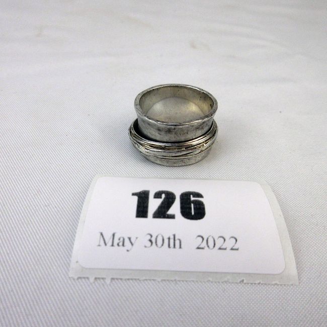 Current Bid: $35.00 [Refresh Price]YOU WILL NEED TO REFRESH THIS PAGE TO SEE UPDATED BID (Log in and this will update automatically) You must LOG IN or REGISTER to see this full page auction listing and bid. Auction is Over Winning Bid Amount: $35.00 **Lot Details: (126i) - Very wide Spinner Sterling Silver heavy Ring w concave design and makers initials MR Log in to add this lot to your watch list or place a bid |