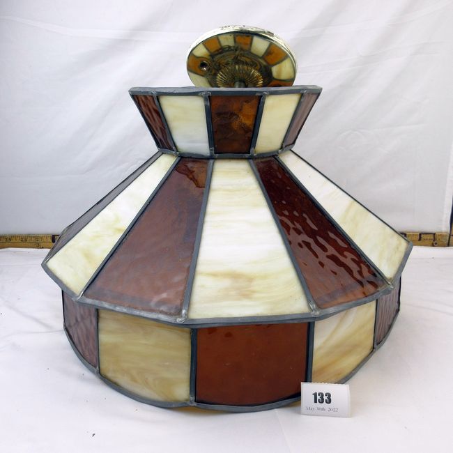 Current Bid: $5.00 [Refresh Price]YOU WILL NEED TO REFRESH THIS PAGE TO SEE UPDATED BID (Log in and this will update automatically) You must LOG IN or REGISTER to see this full page auction listing and bid. Auction is Over Winning Bid Amount: $5.00 **Lot Details: (133i) - Vintage hanging lead and stain glass light fixture. Untested and 2 small cracks Log in to add this lot to your watch list or place a bid |