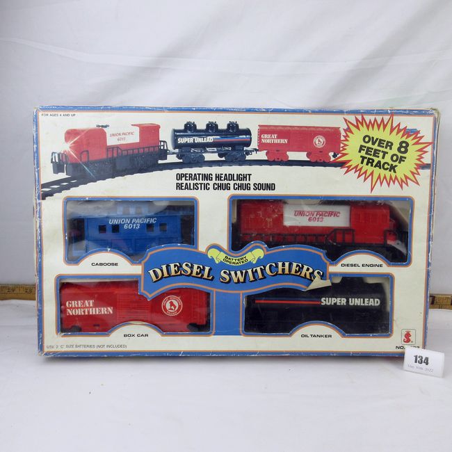 Current Bid: $9.00 [Refresh Price]YOU WILL NEED TO REFRESH THIS PAGE TO SEE UPDATED BID (Log in and this will update automatically) You must LOG IN or REGISTER to see this full page auction listing and bid. Auction is Over Winning Bid Amount: $9.00 **Lot Details: (134i) - 1989 Scientific Toys Ltd complete in original box model train set with 8' of track. Battery operated, untested Log in to add this lot to your watch list or place a bid |