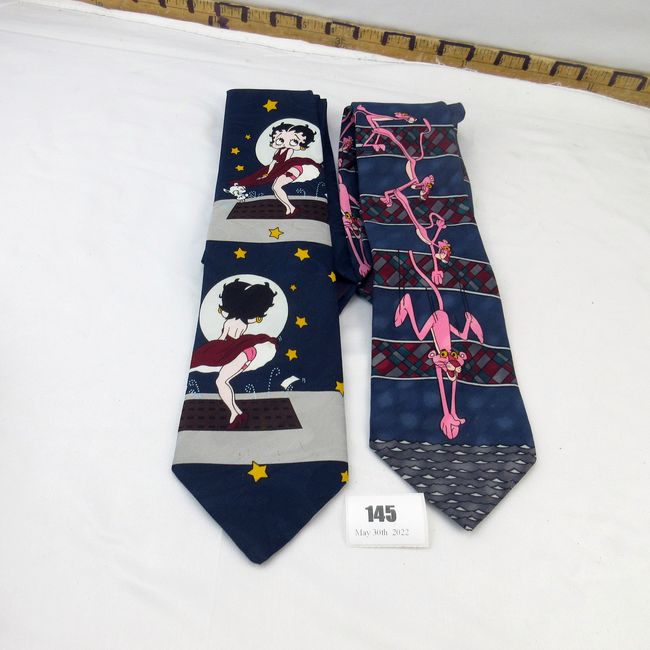 Current Bid: $5.00 [Refresh Price]YOU WILL NEED TO REFRESH THIS PAGE TO SEE UPDATED BID (Log in and this will update automatically) You must LOG IN or REGISTER to see this full page auction listing and bid. Auction is Over Winning Bid Amount: $5.00 **Lot Details: (145i) - Retro ties. Betty Boop and Pink Panther ties in new condition Log in to add this lot to your watch list or place a bid |