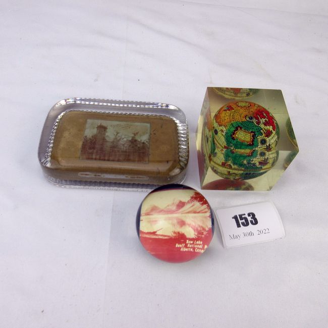 Current Bid: $[Refresh Price]YOU WILL NEED TO REFRESH THIS PAGE TO SEE UPDATED BID (Log in and this will update automatically) You must LOG IN or REGISTER to see this full page auction listing and bid. Auction is Over Winning Bid Amount: $This item did not sell **Lot Details: (153i) - 3 vintage paperweights, souvenir theme Log in to add this lot to your watch list or place a bid |