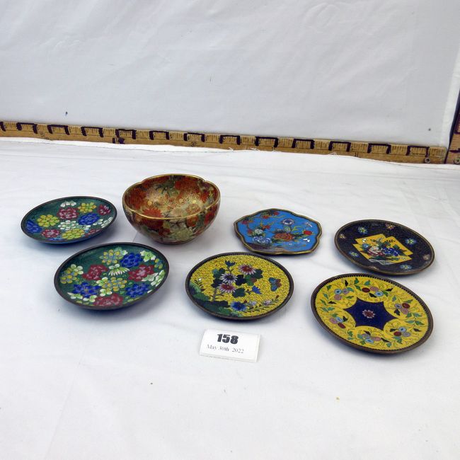 Current Bid: $12.00 [Refresh Price]YOU WILL NEED TO REFRESH THIS PAGE TO SEE UPDATED BID (Log in and this will update automatically) You must LOG IN or REGISTER to see this full page auction listing and bid. Auction is Over Winning Bid Amount: $12.00 **Lot Details: (158i) - 6 small cloisonne dishes and small cloisonne bowl Log in to add this lot to your watch list or place a bid |