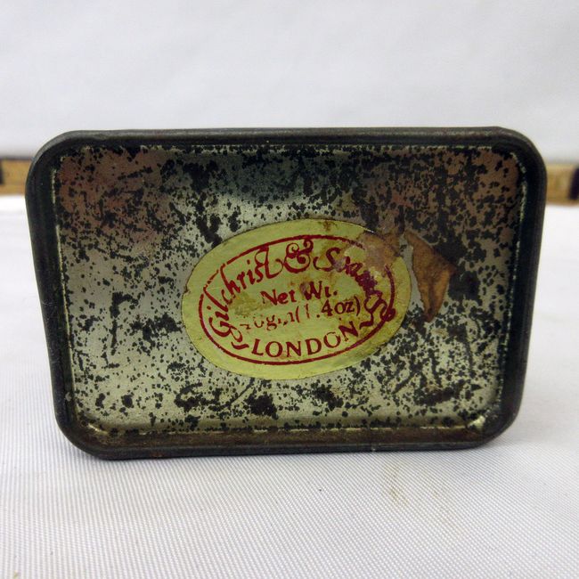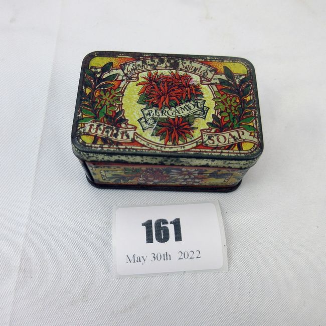 Current Bid: $5.00 [Refresh Price]YOU WILL NEED TO REFRESH THIS PAGE TO SEE UPDATED BID (Log in and this will update automatically) You must LOG IN or REGISTER to see this full page auction listing and bid. Auction is Over Winning Bid Amount: $5.00 **Lot Details: (161i) - Gilbert and Soames antique soap tin Log in to add this lot to your watch list or place a bid |