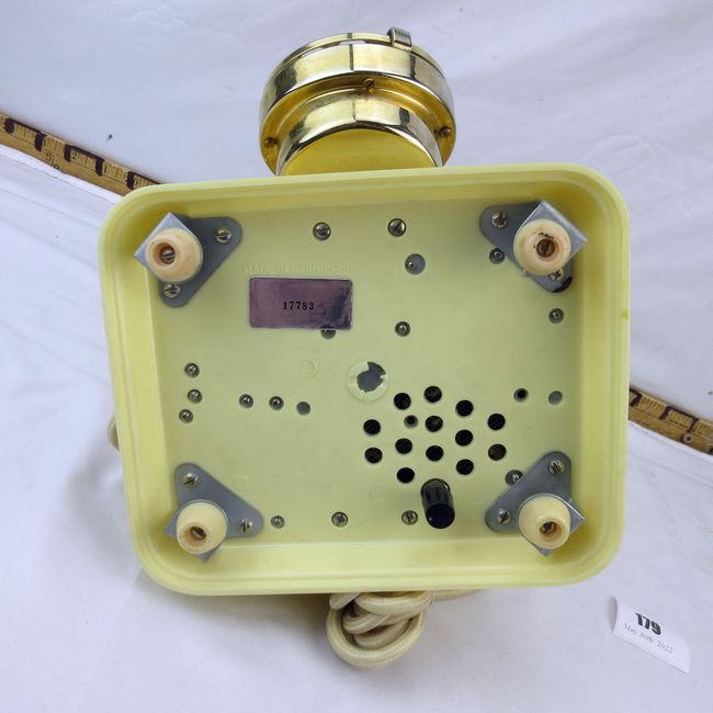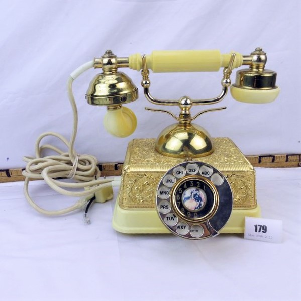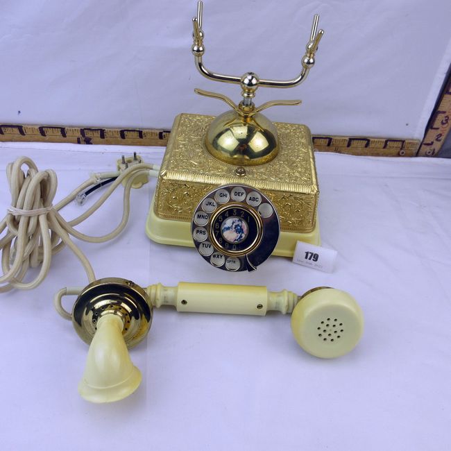 Current Bid: $5.00 [Refresh Price]YOU WILL NEED TO REFRESH THIS PAGE TO SEE UPDATED BID (Log in and this will update automatically) You must LOG IN or REGISTER to see this full page auction listing and bid. Auction is Over Winning Bid Amount: $5.00 **Lot Details: (179i) - Brass MCM rotary cradle phone in excellent condition. Very heavy. Made in Singapore Log in to add this lot to your watch list or place a bid |