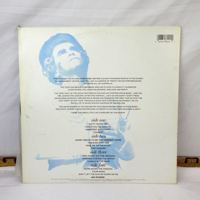 Current Bid: $7.00 [Refresh Price]YOU WILL NEED TO REFRESH THIS PAGE TO SEE UPDATED BID (Log in and this will update automatically) You must LOG IN or REGISTER to see this full page auction listing and bid. Auction is Over Winning Bid Amount: $7.00 **Lot Details: (206i) - Elton John, Live in Australia, like new vinyl. No issues Log in to add this lot to your watch list or place a bid |