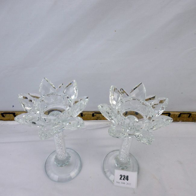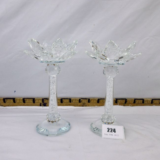Current Bid: $9.00 [Refresh Price]YOU WILL NEED TO REFRESH THIS PAGE TO SEE UPDATED BID (Log in and this will update automatically) You must LOG IN or REGISTER to see this full page auction listing and bid. Auction is Over Winning Bid Amount: $9.00 **Lot Details: (224i) - 2 crystal candle holders Log in to add this lot to your watch list or place a bid |